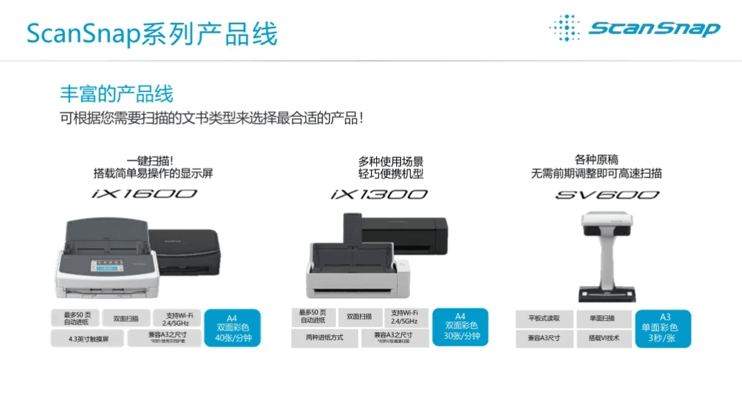 ScanSnap系列不仅可以满足个人及中小企业的专业扫描需求,,,更广泛应用于医疗、、教育、、金融、、法律等行业。。。